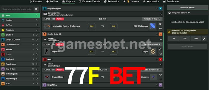 O 77F Bet oferece uma grande seleção de opções de apostas em e-sports com probabilidades competitivas